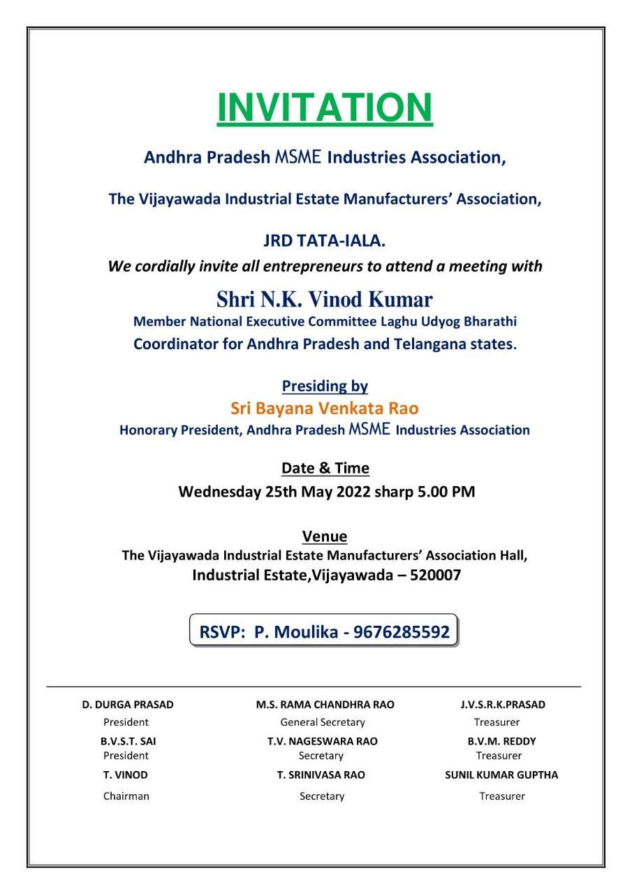 Submission of representation and interaction of MSME problems to Laghu Udyog Bharati AP In charge.